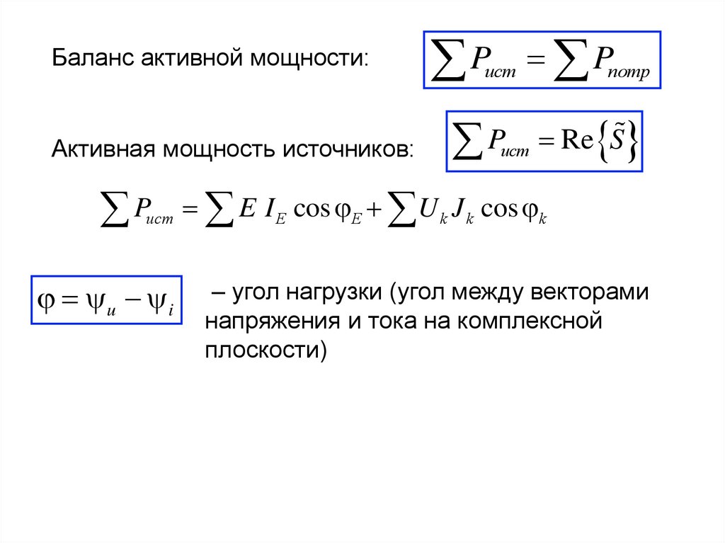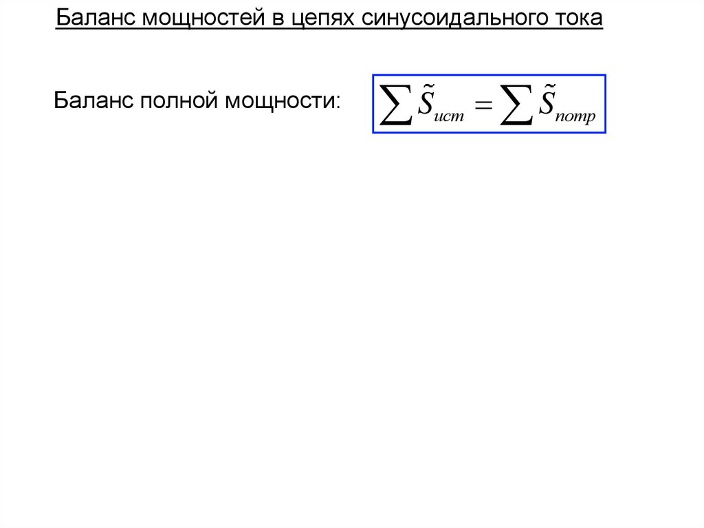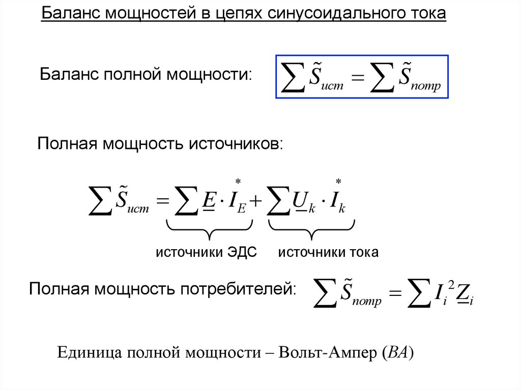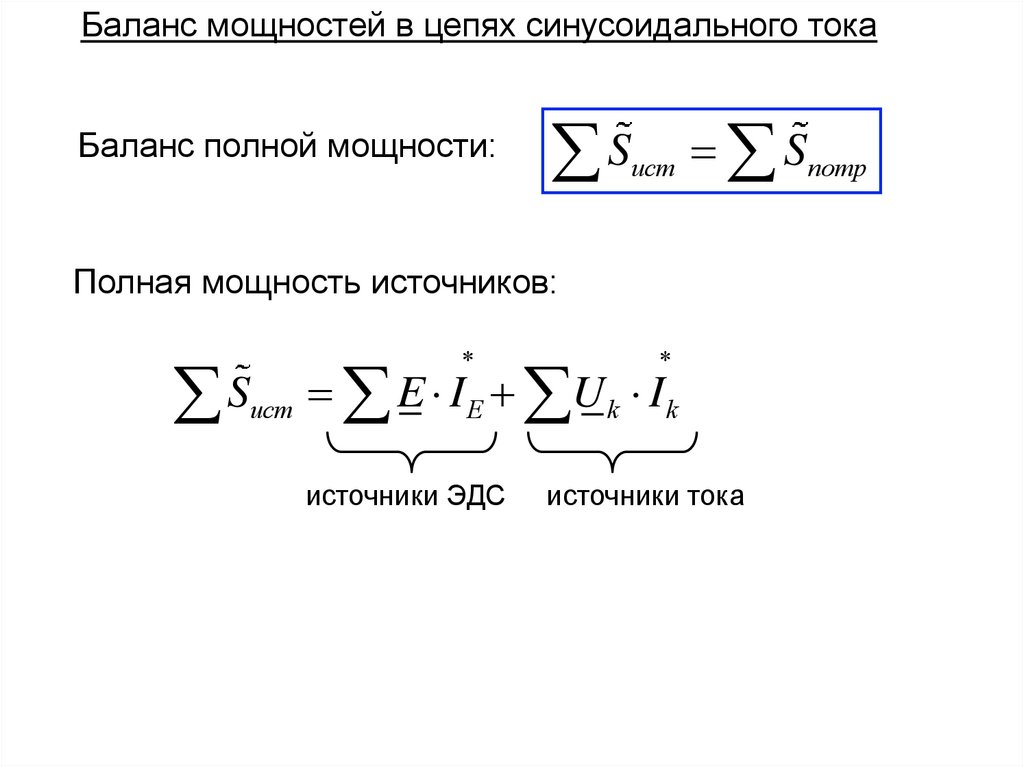 Баланс мощностей в цепях синусоидального токаБаланс полной мощности: