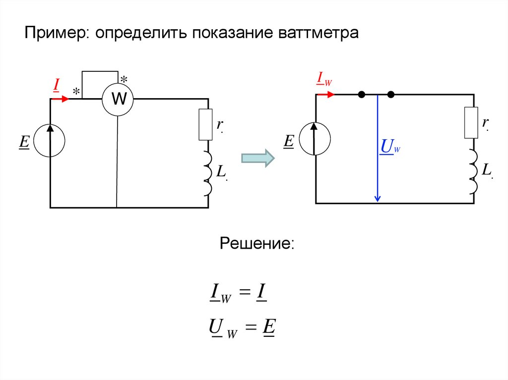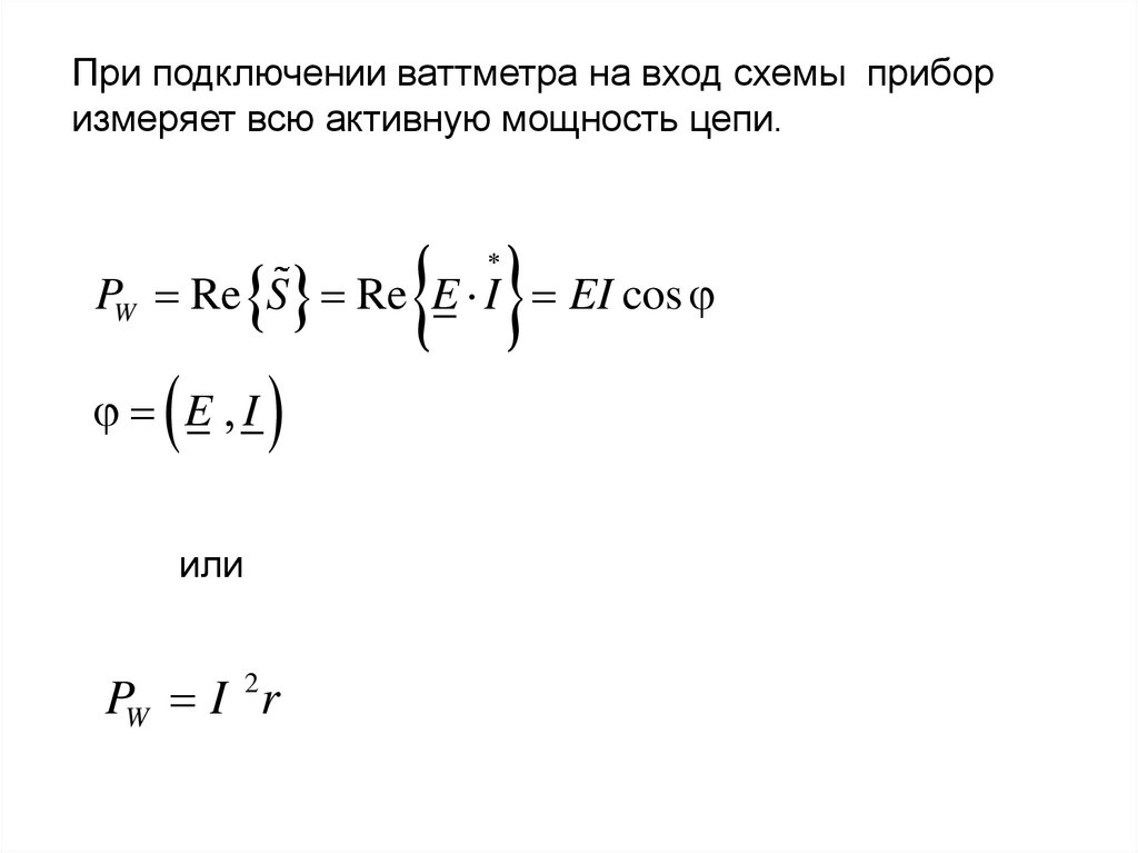 При подключении ваттметра на вход схемы приборизмеряет всю активную мощность цепи.