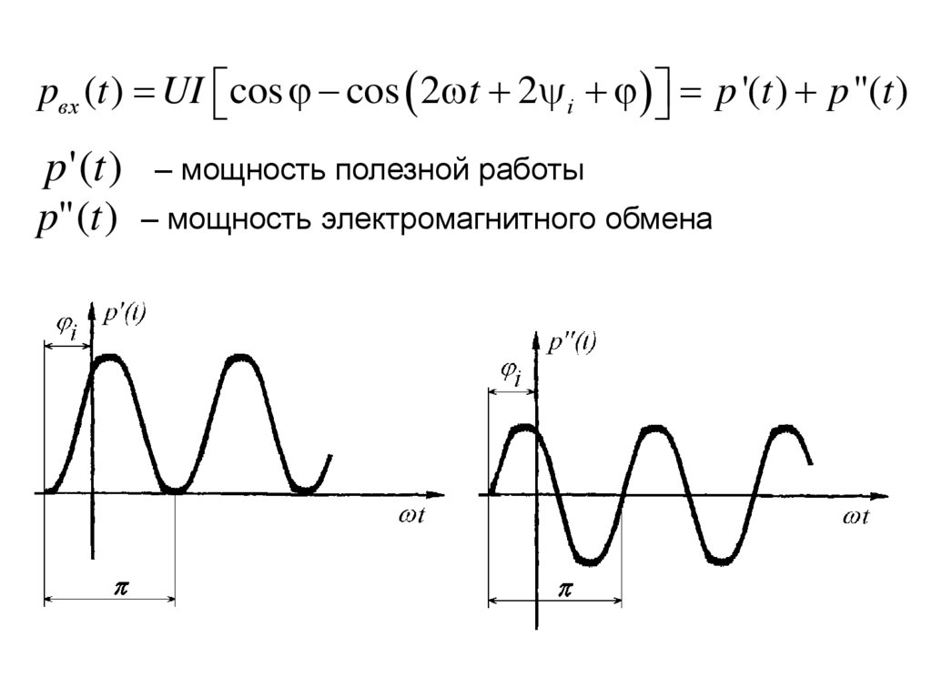 pвх (t ) UI cos cos 2 t 2 i p '(t ) p "(t )p' (t ) – мощность полезной работы