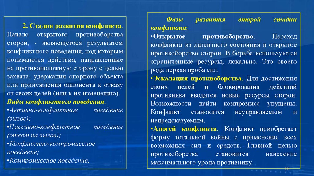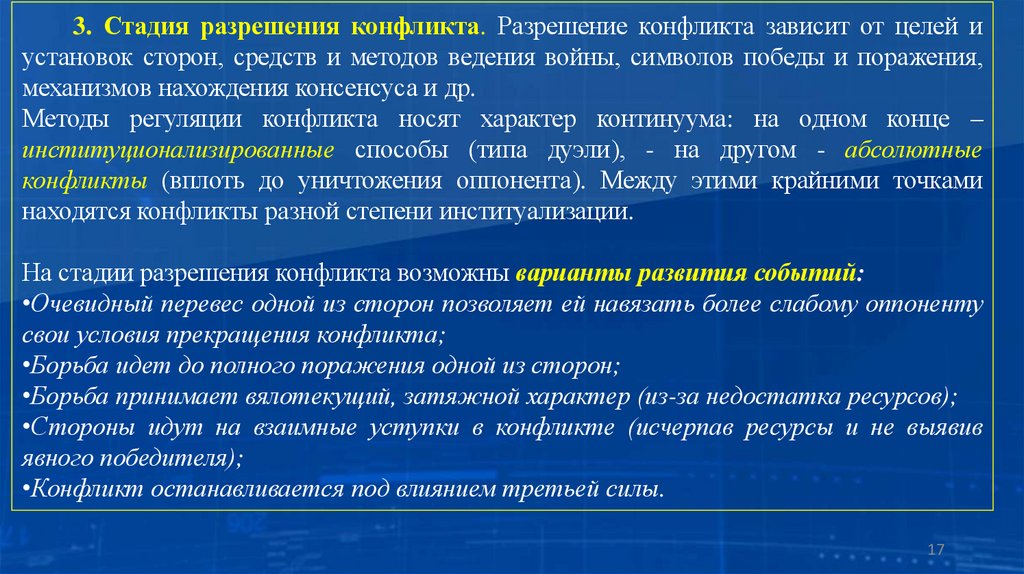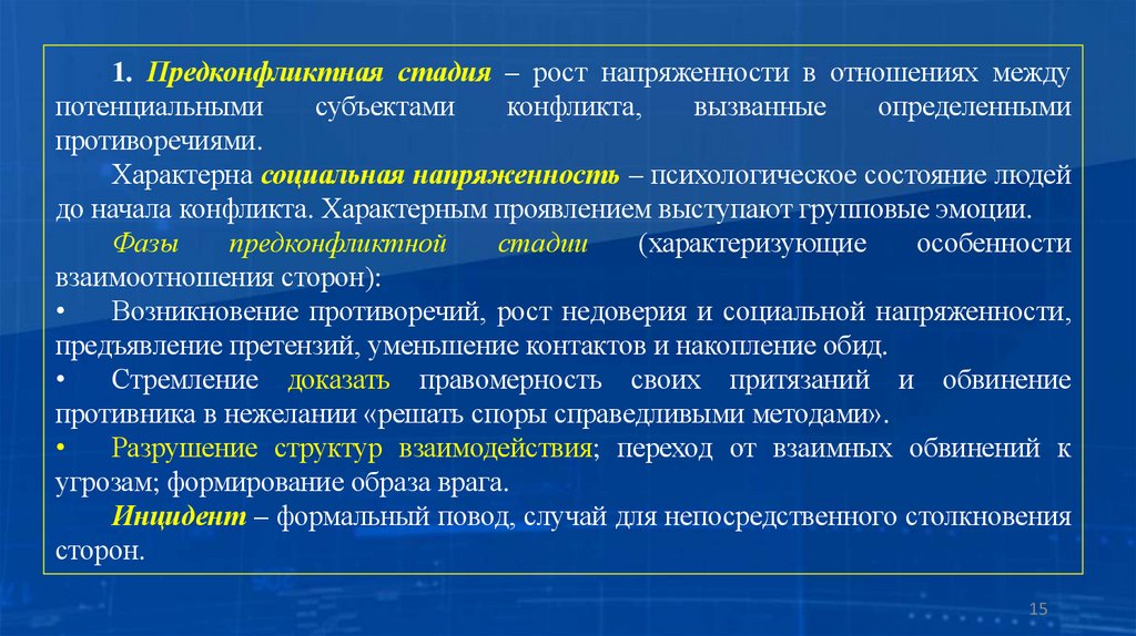 1.3. Основные стадии развития конфликта