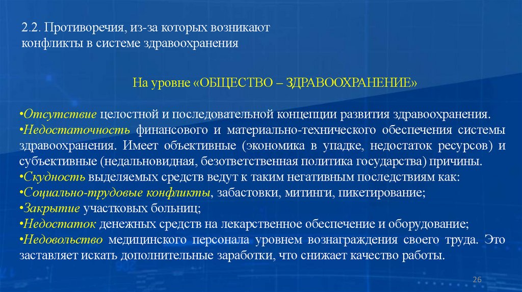 2.2. Противоречия, из-за которых возникают конфликты в системе здравоохранения