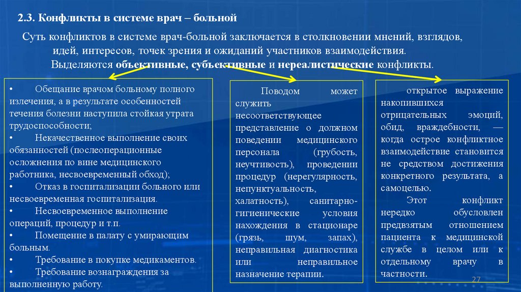 2.3. Конфликты в системе врач – больной