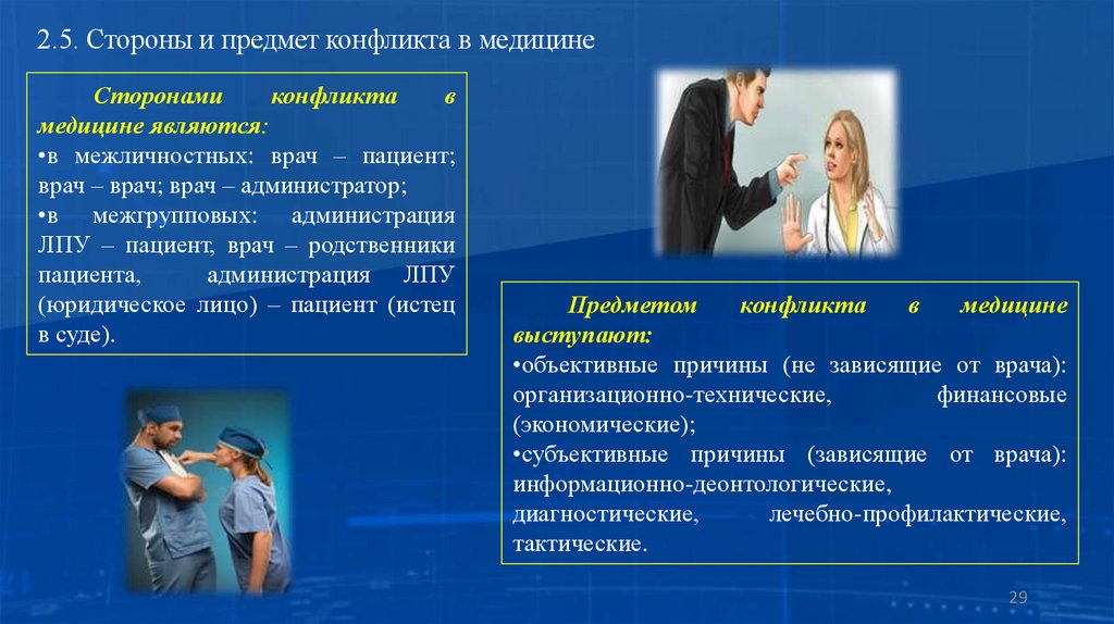 2.5. Стороны и предмет конфликта в медицине