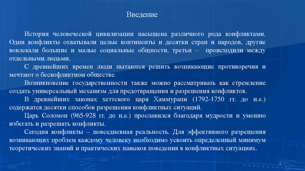 ВведениеИстория человеческой цивилизации насыщена различного рода конфликтами.
