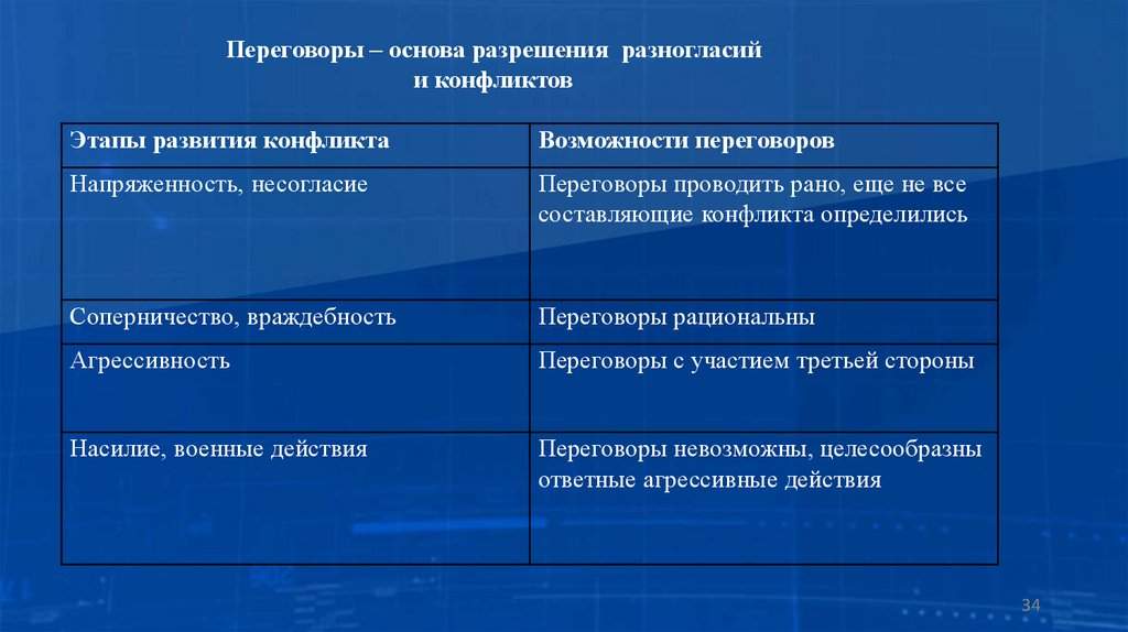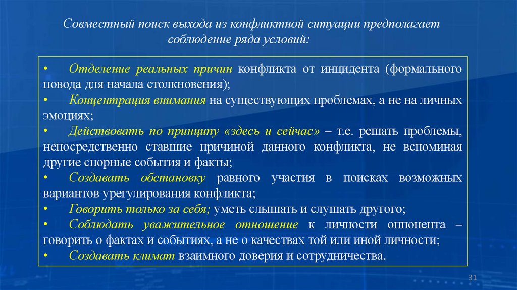 субъективных причин назревающего столкновения, разрешению противоречия неконфликтными