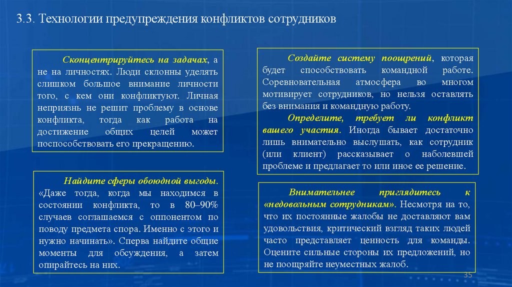 3.3. Технологии предупреждения конфликтов сотрудников