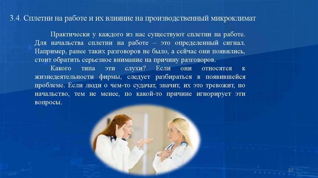 3.4. Сплетни на работе и их влияние на производственный микроклимат