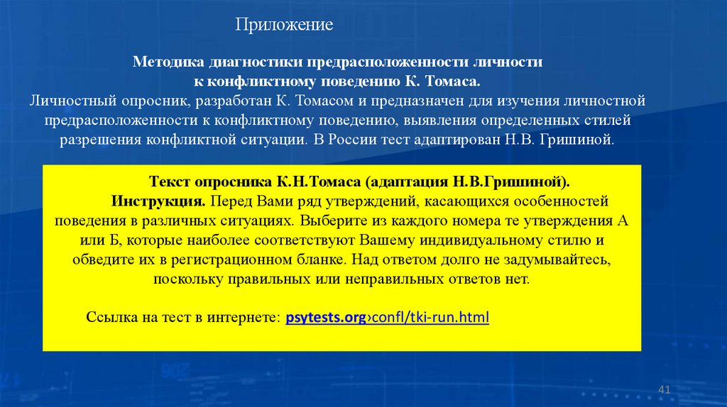 Текст опросника К.Н.Томаса (адаптация Н.В.Гришиной).