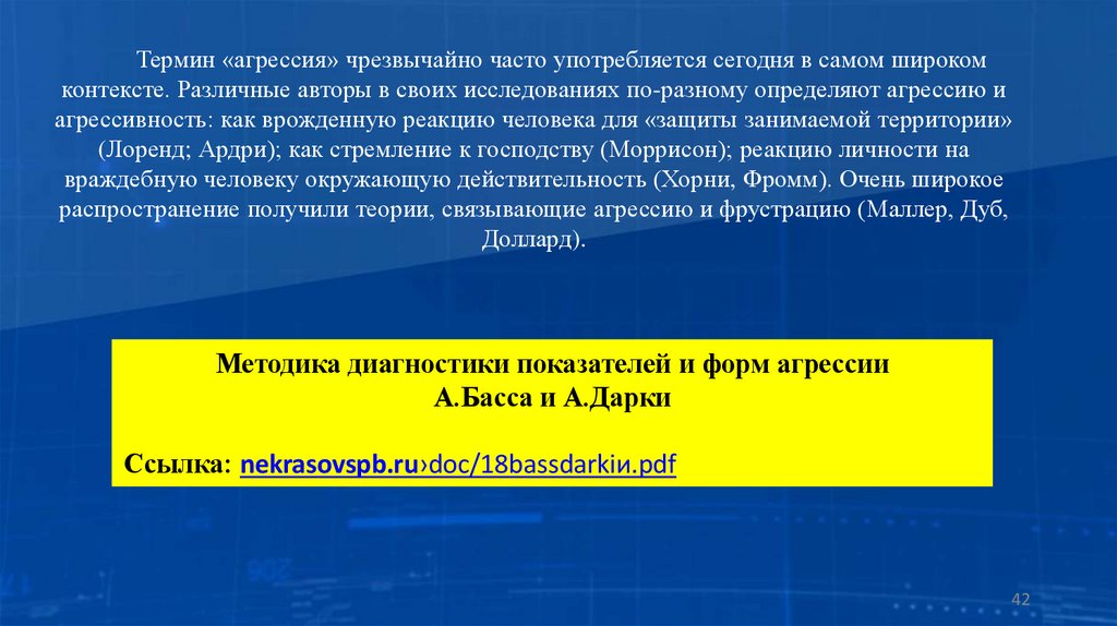 Термин «агрессия» чрезвычайно часто употребляется сегодня в самом широкомконтексте. Различные авторы в своих исследованиях по-разному определяют агрессию и