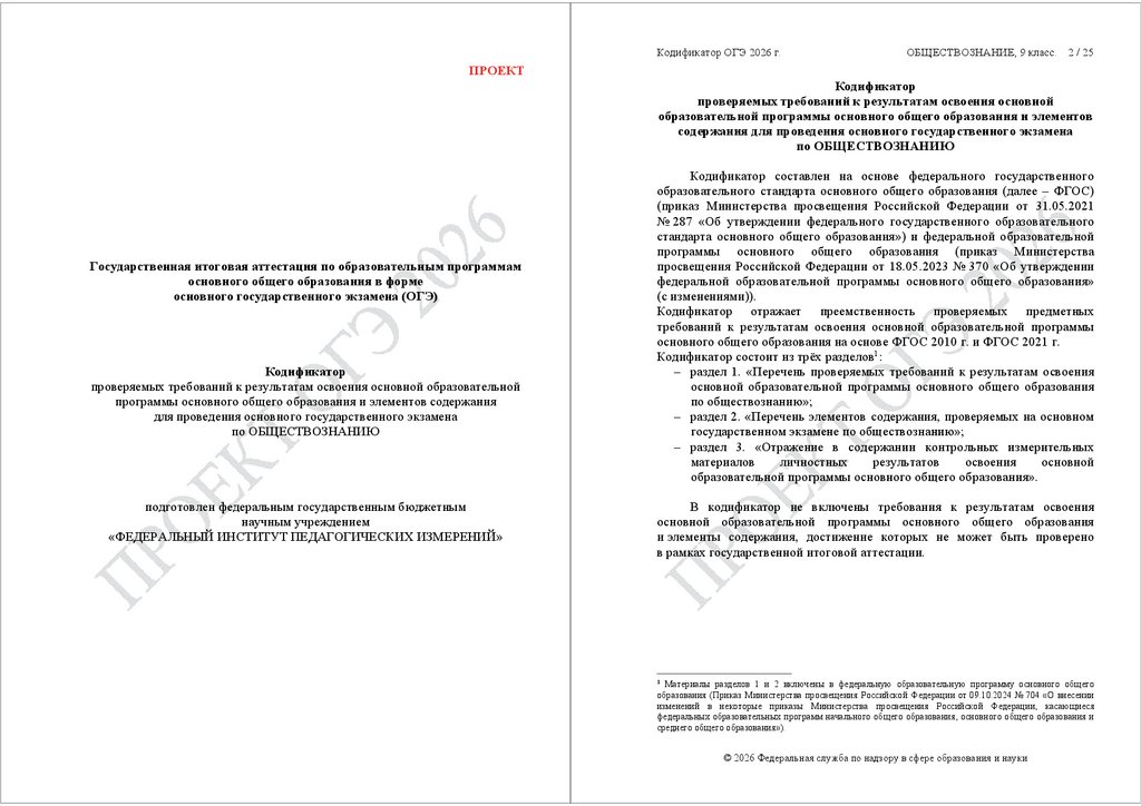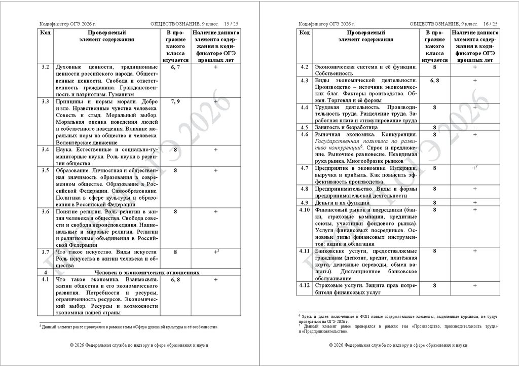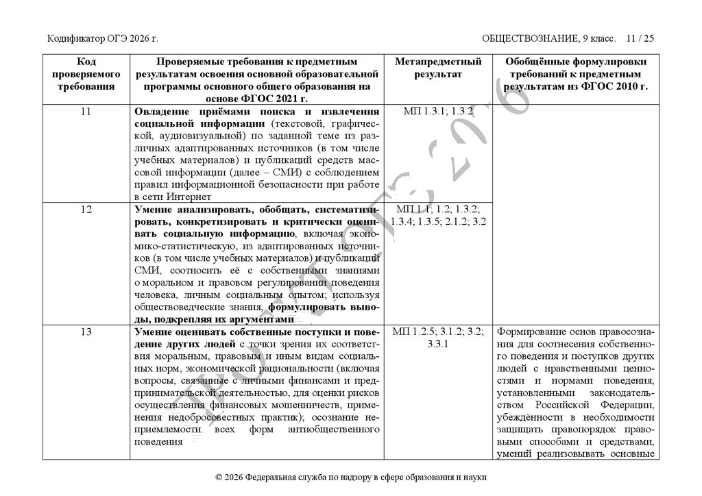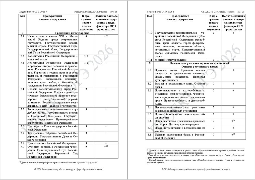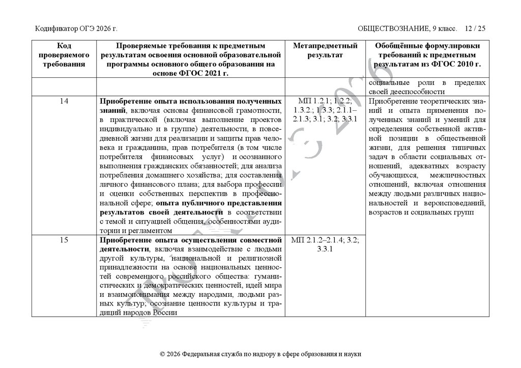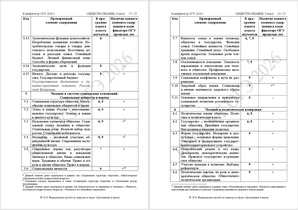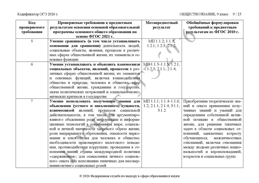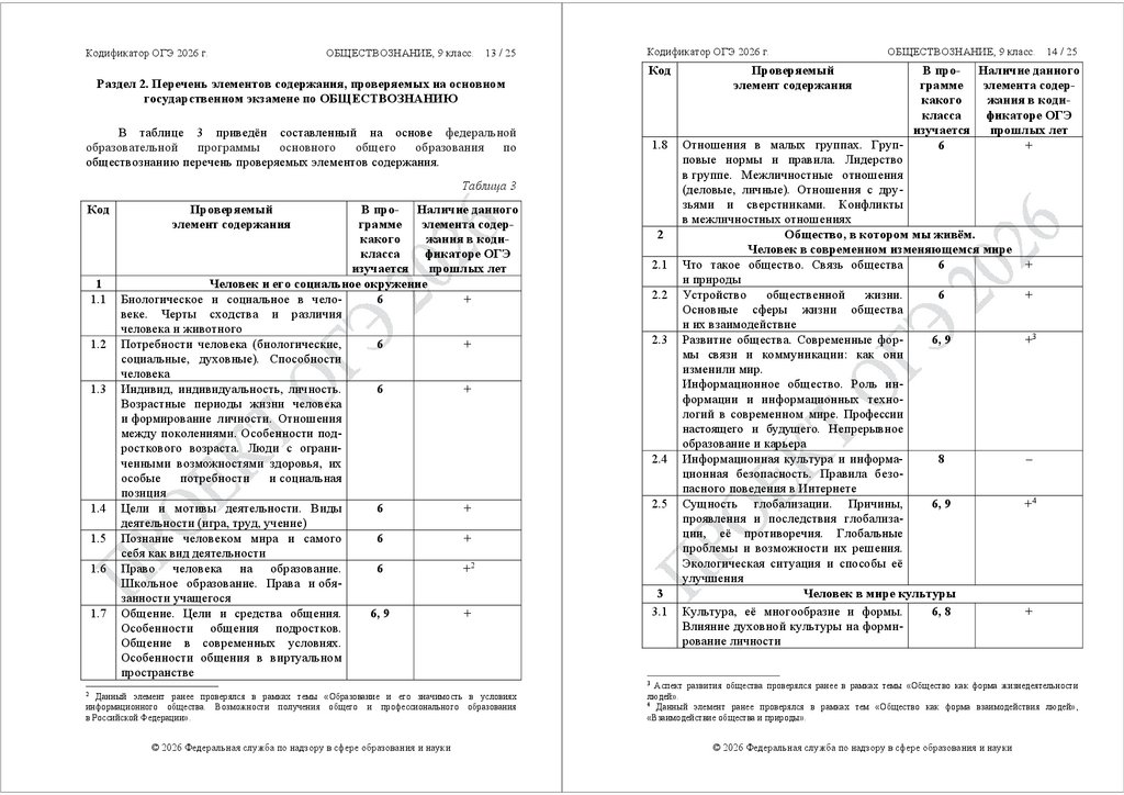 Кодификатор ОГЭ 2026 г.ОБЩЕСТВОЗНАНИЕ, 9 класс.