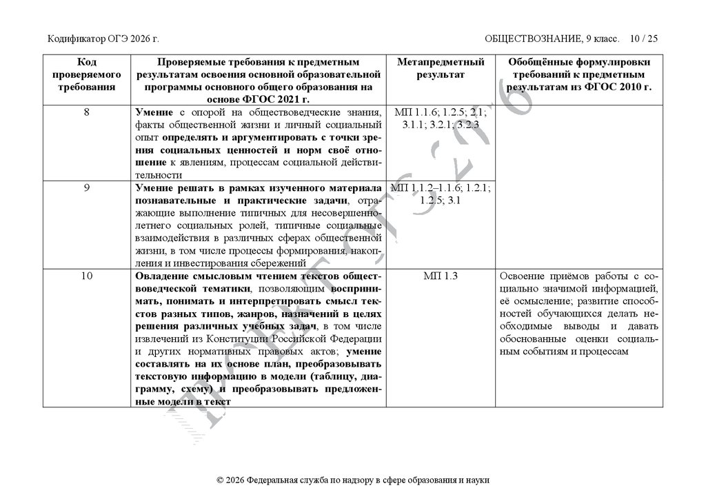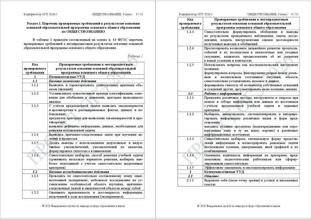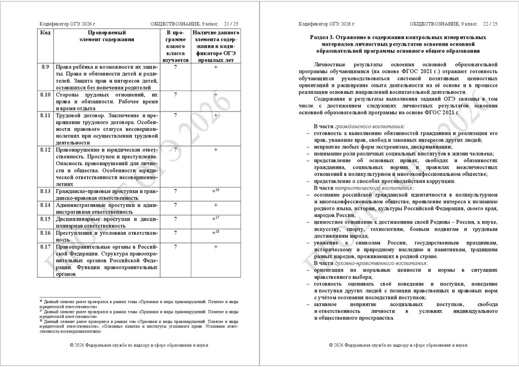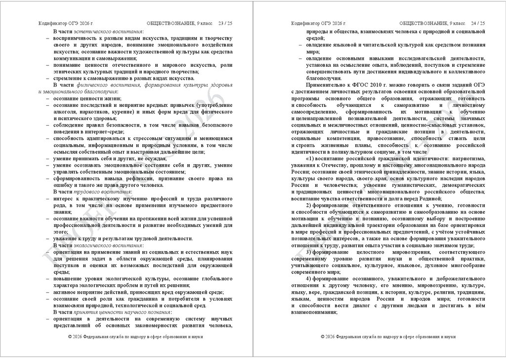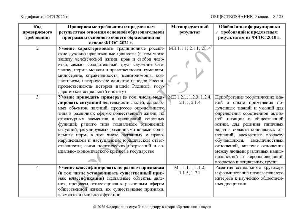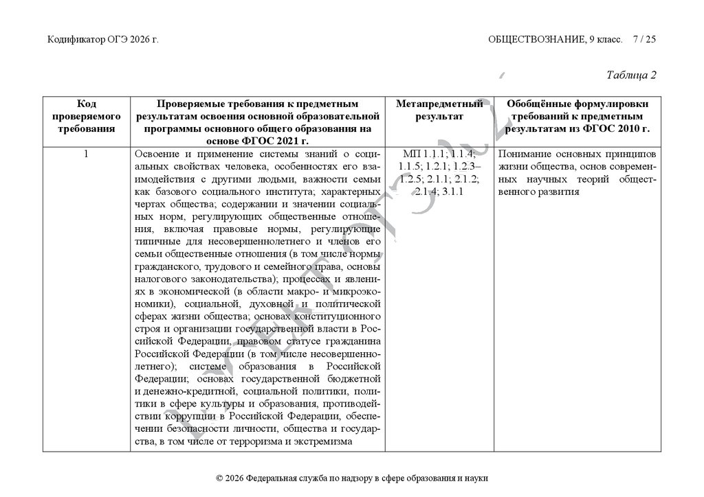 Кодификатор ОГЭ 2026 г.ОБЩЕСТВОЗНАНИЕ, 9 класс. 2 / 25