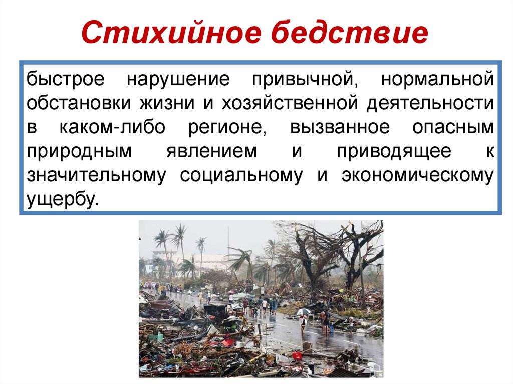 Стихийное бедствиебыстрое нарушение привычной, нормальной