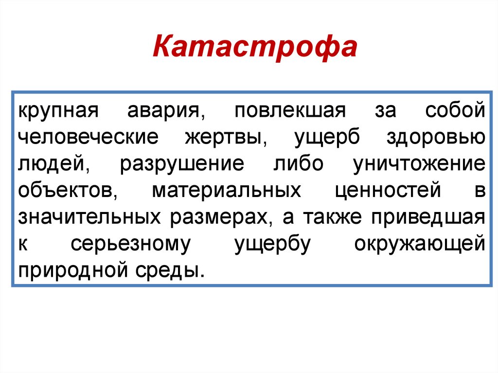 Катастрофакрупная авария, повлекшая за собой