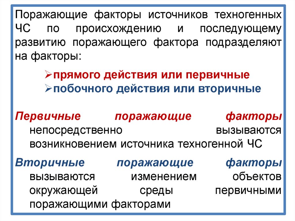 Поражающие факторы источников техногенныхЧС по происхождению и последующему