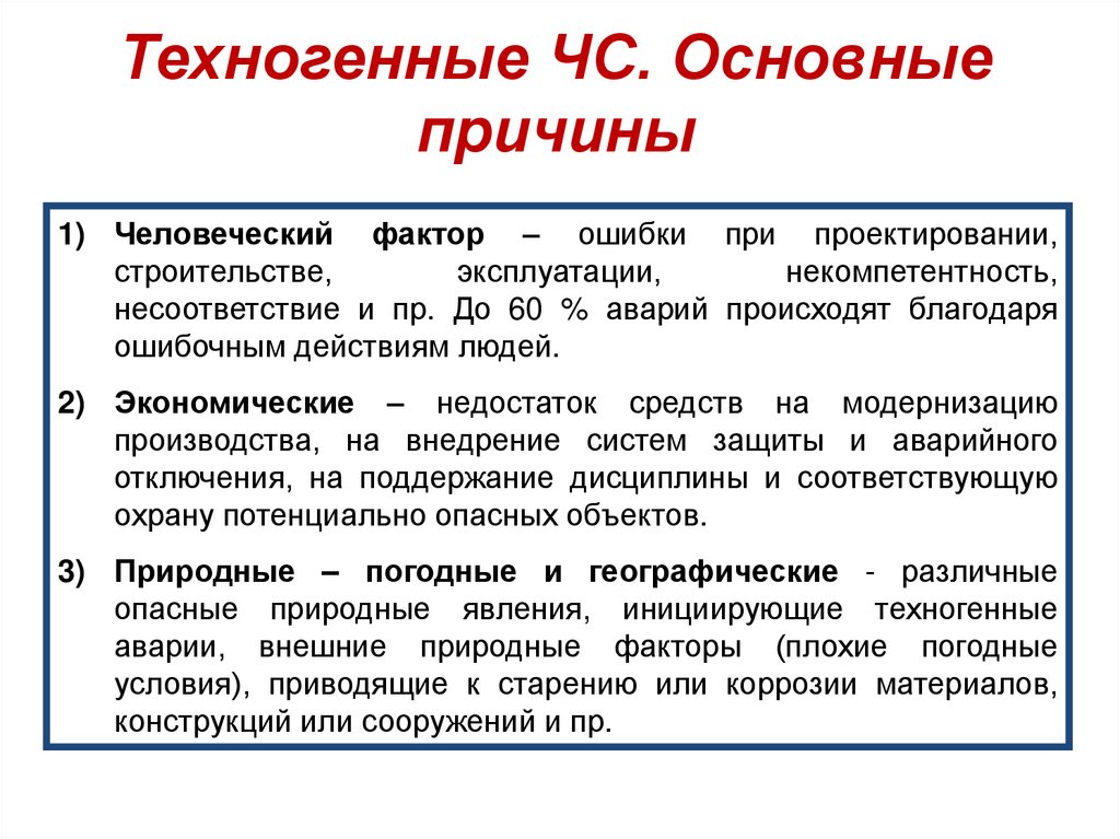 Техногенные ЧС. Основныепричины