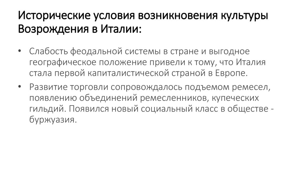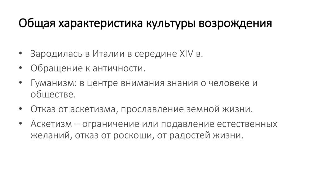 Общая характеристика культуры возрождения• Зародилась в Италии в середине XIV в.