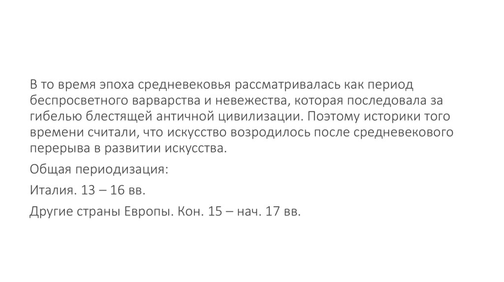 В то время эпоха средневековья рассматривалась как периодбеспросветного варварства и невежества, которая последовала за