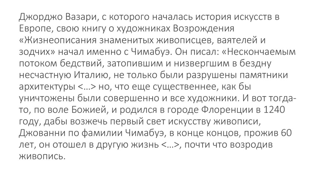 здесь с Джотто, а потом были Мазаччо, Донателло,