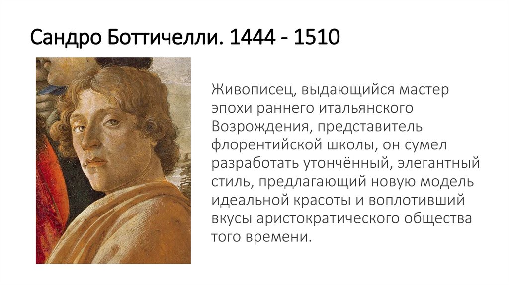Сандро Боттичелли. 1444 - 1510Живописец, выдающийся мастер