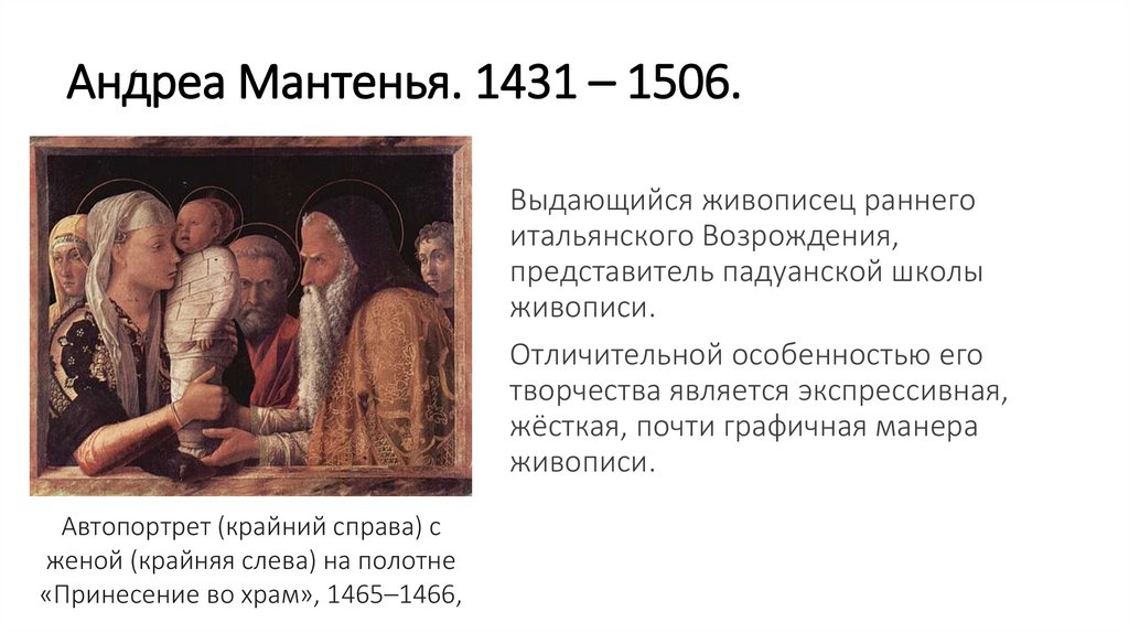 Андреа Мантенья. 1431 – 1506.Выдающийся живописец раннего
