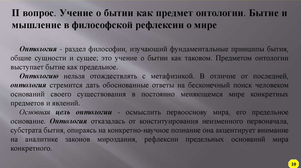 II вопрос. Учение о бытии как предмет онтологии. Бытие и мышление в