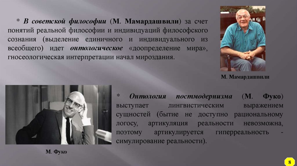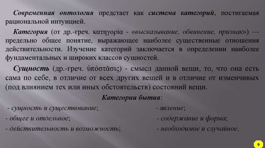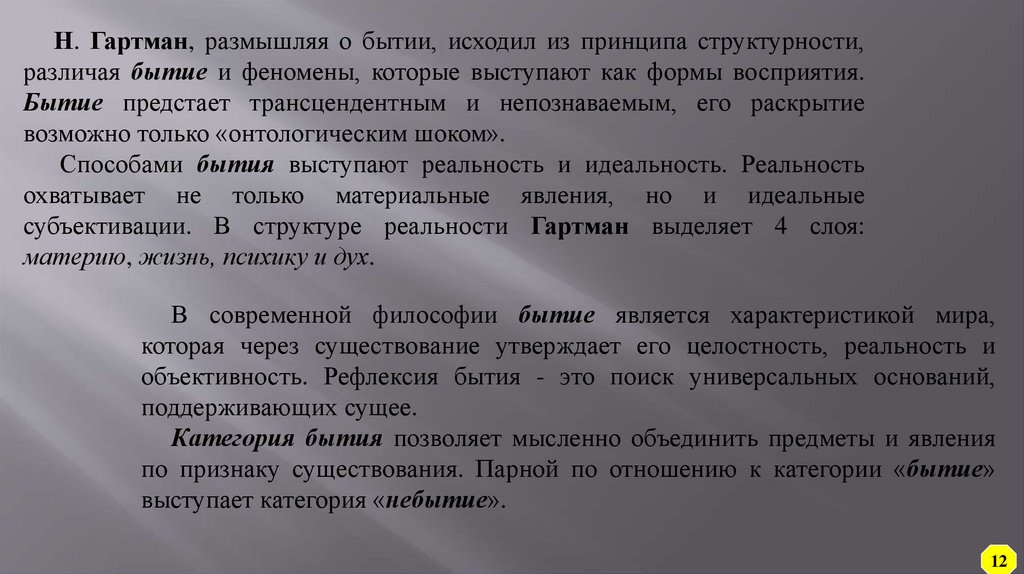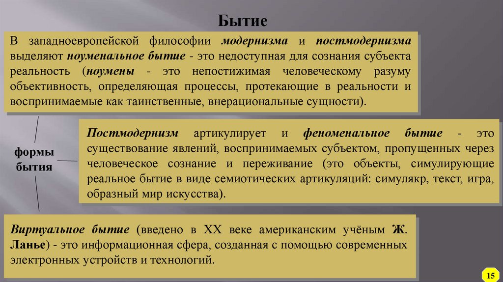 формы рефлексии бытия, критику деонтологизации (потеря глубинных