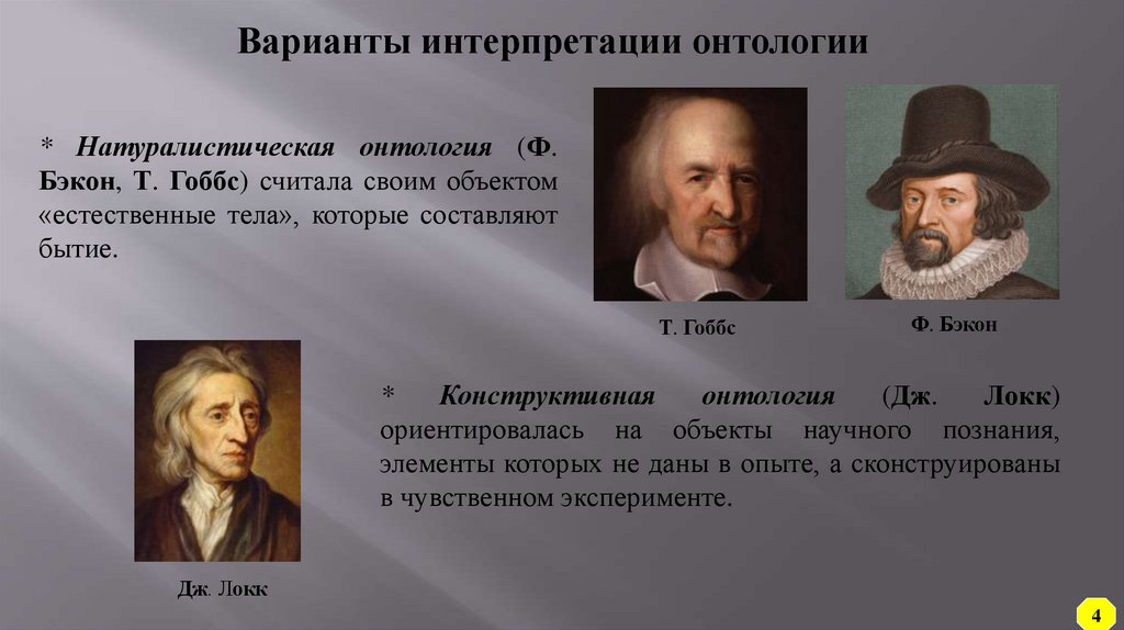 Варианты интерпретации онтологии* Натуралистическая онтология (Ф.
