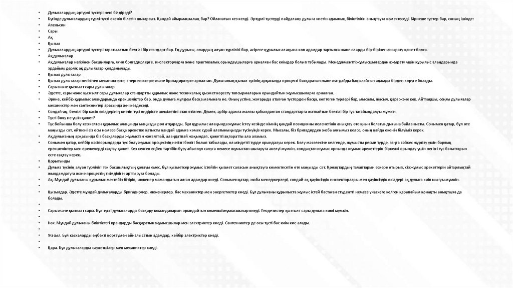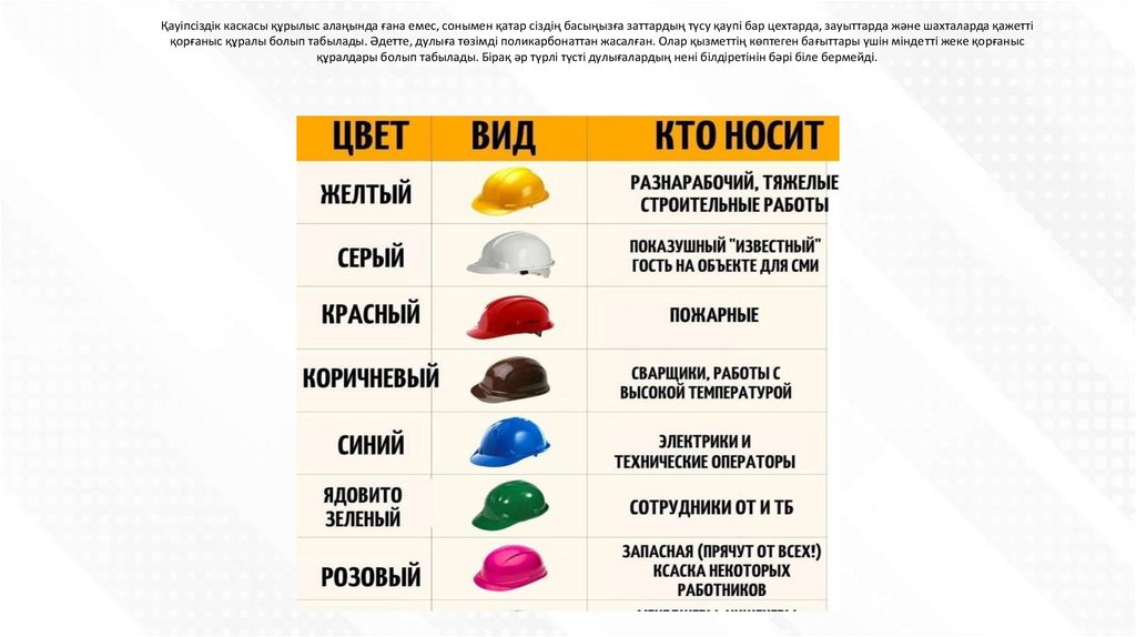 құралдары болып табылады. Бірақ әр түрлі түсті дулығалардың нені білдіретінін бәрі біле бермейді.