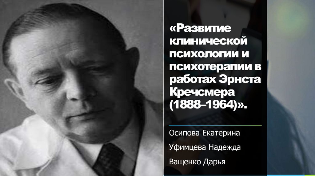 1. «Развитие клинической психологии и психотерапии в работах Эрнста Кречсмера (1888–1964)».