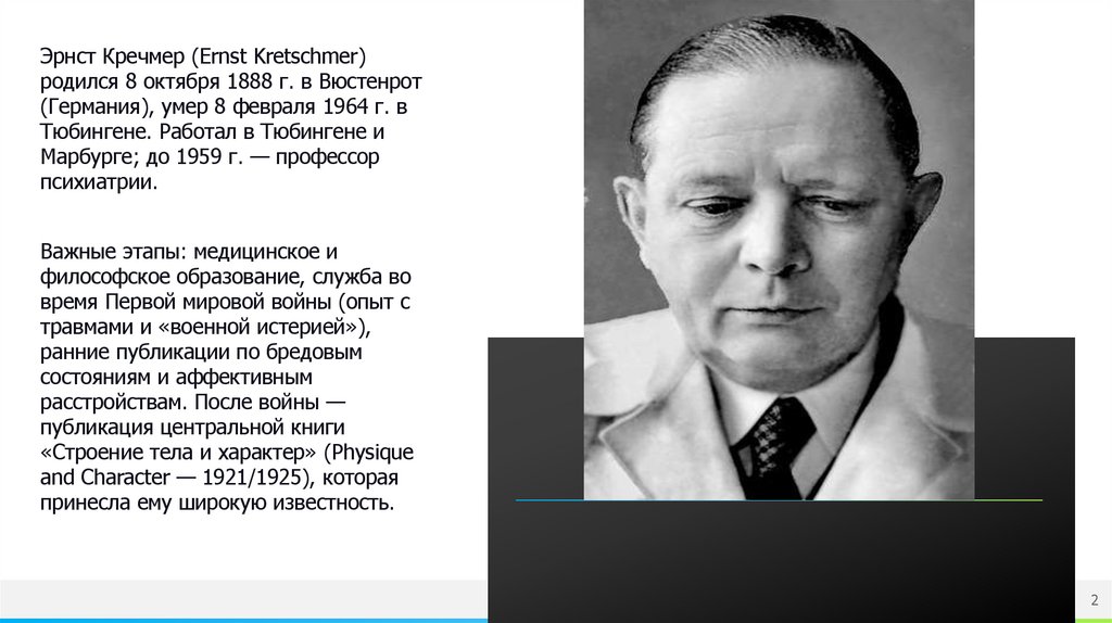 Эрнст Кречмер (Ernst Kretschmer)родился 8 октября 1888 г. в Вюстенрот