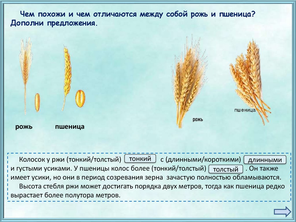 Чем похожи и чем отличаются между собой рожь и пшеница?Дополни предложения.