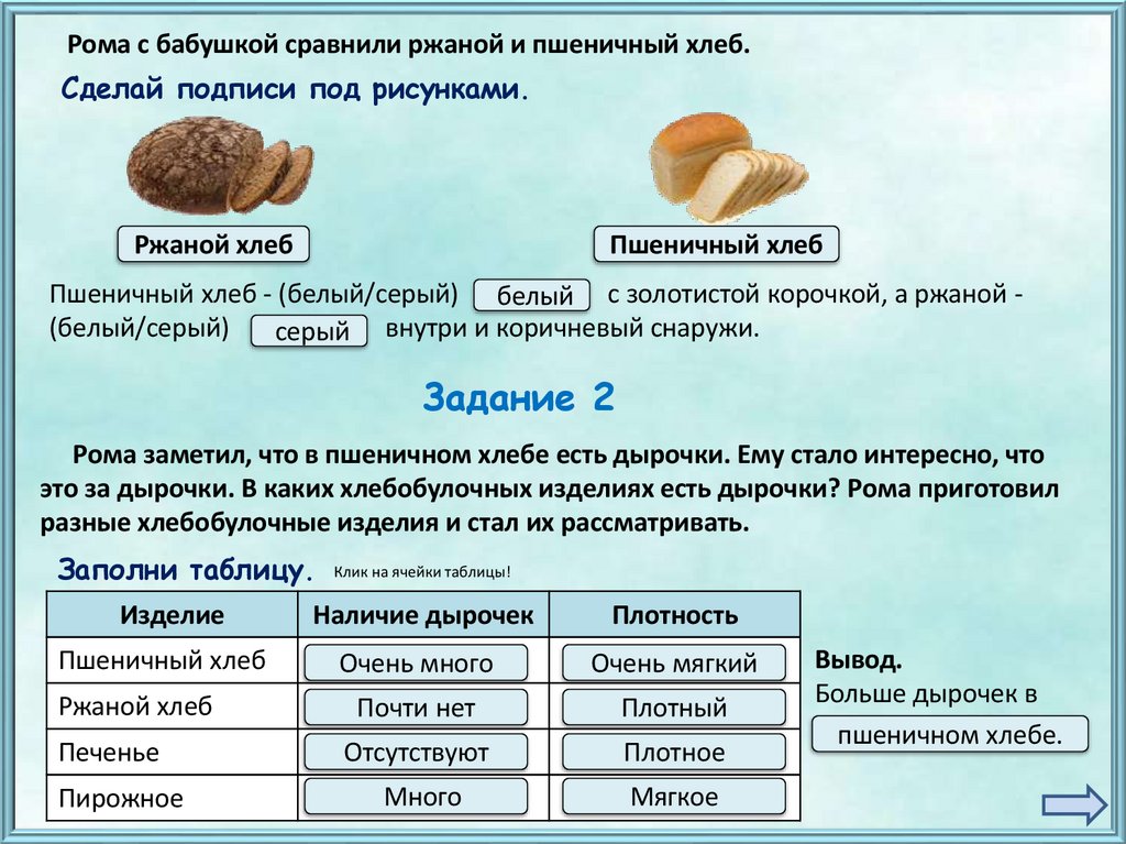 Рома с бабушкой сравнили ржаной и пшеничный хлеб.Сделай подписи под рисунками.