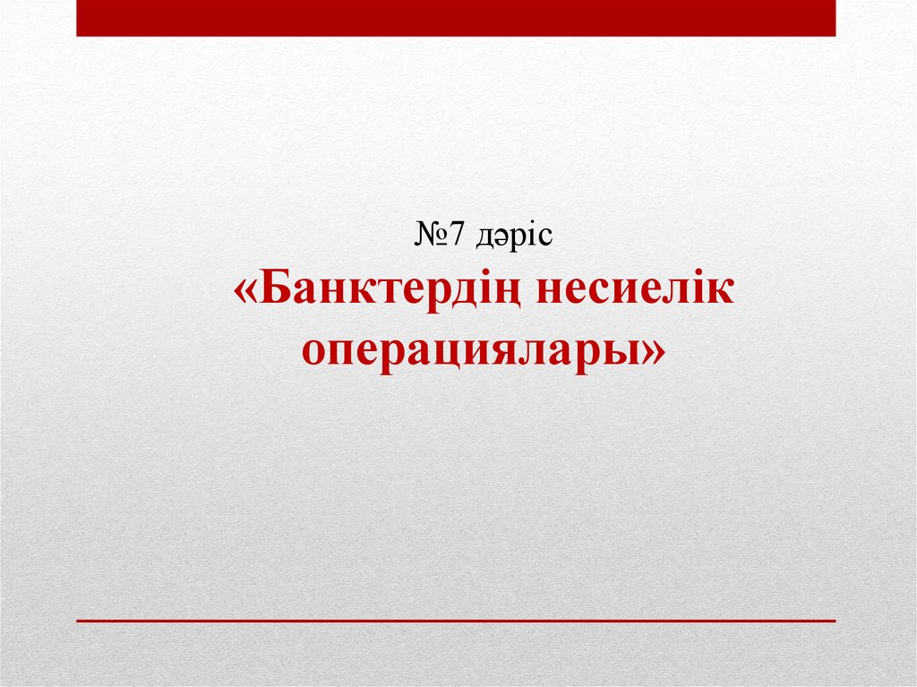 №7 дәріс«Банктердің несиелік