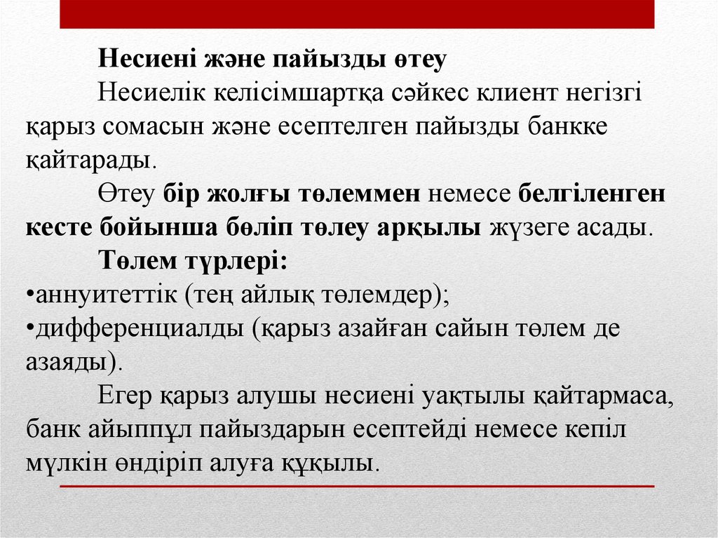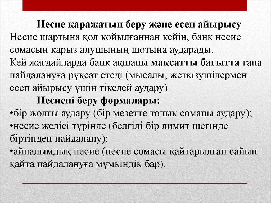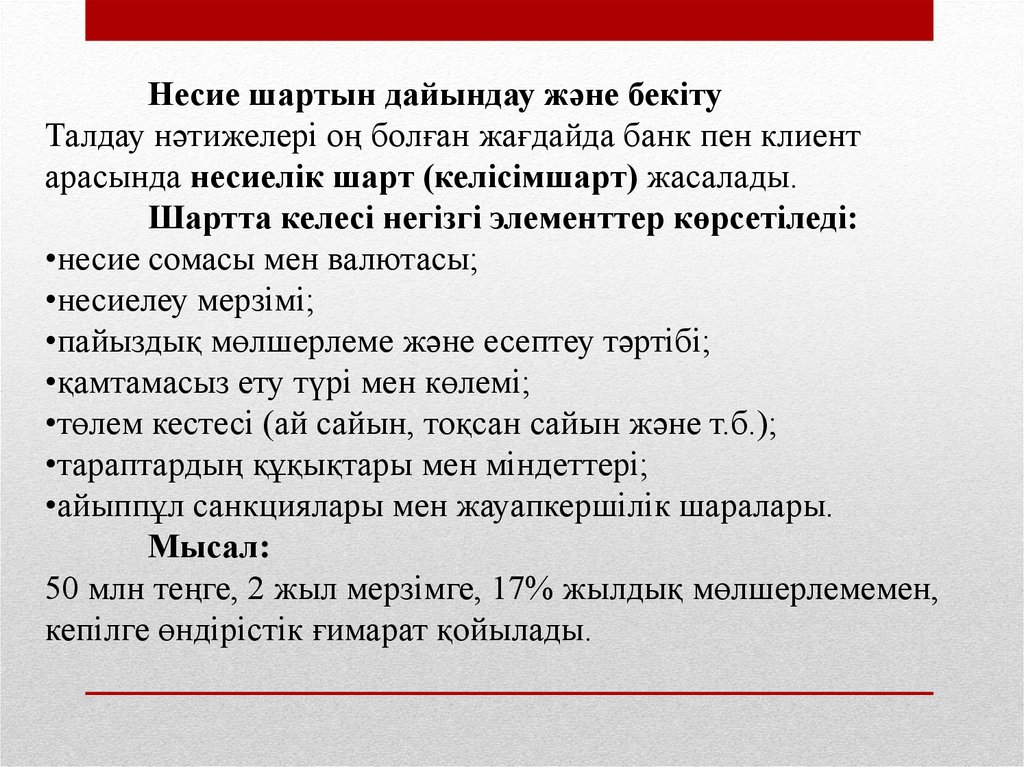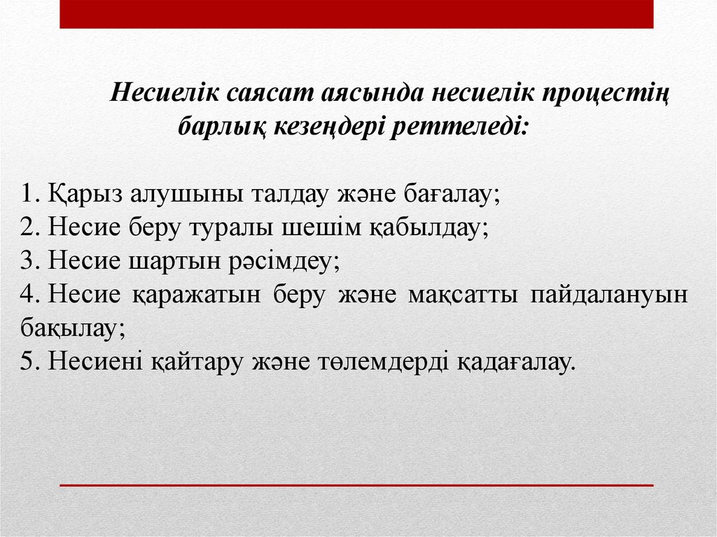 - Несиелік процестің кезеңдері және оны ұйымдастыру