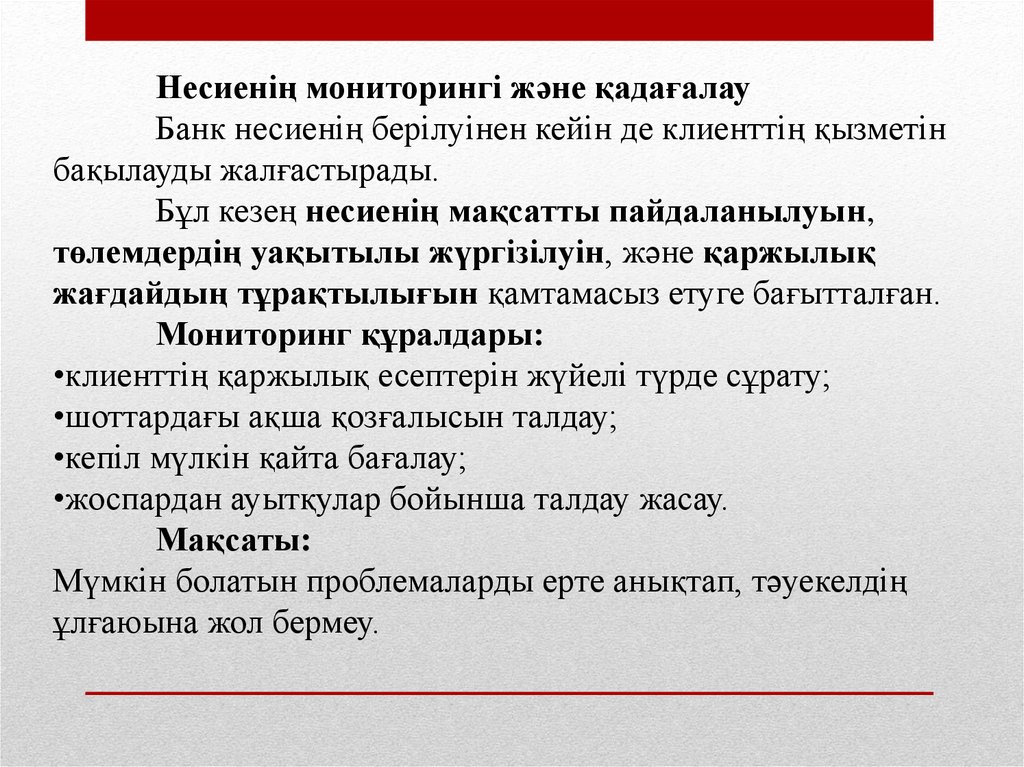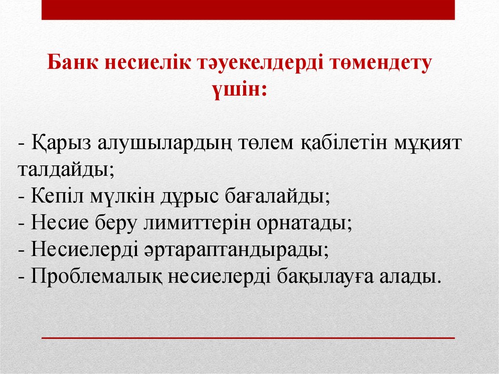 - Қарыз алушылардың төлем қабілетін мұқият