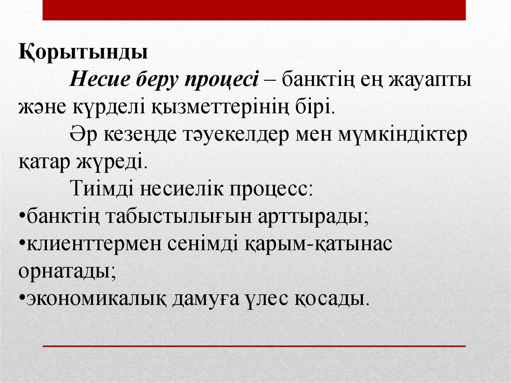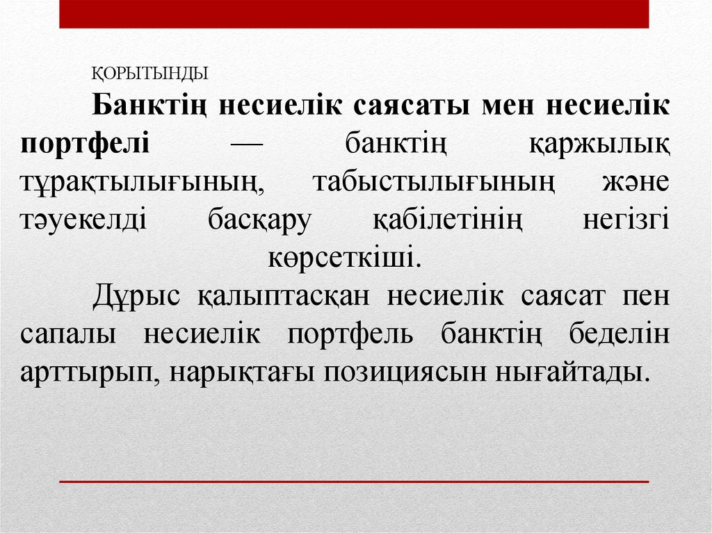 ҚОРЫТЫНДЫБанктің несиелік саясаты мен несиелік