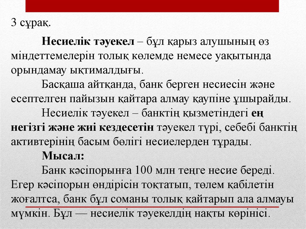 3. Несиелік тәуекелдер және оларды басқару
