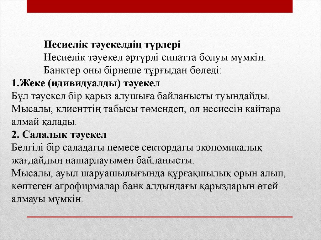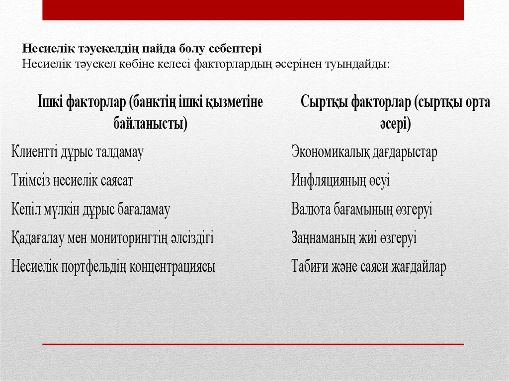 - Банктің несиелік саясаты және несиелік тәуекелдерді