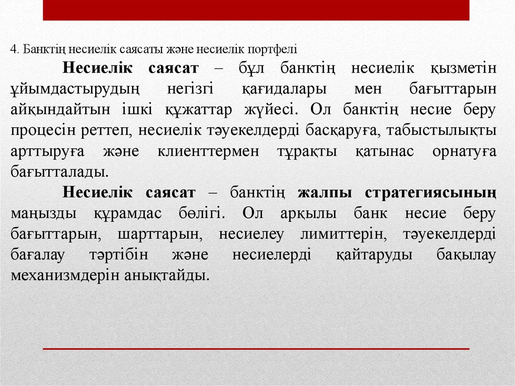 4. Банктің несиелік саясаты және несиелік