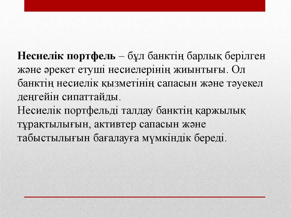 Несиелік портфель – бұл банктің барлық берілгенжәне әрекет етуші несиелерінің жиынтығы. Ол