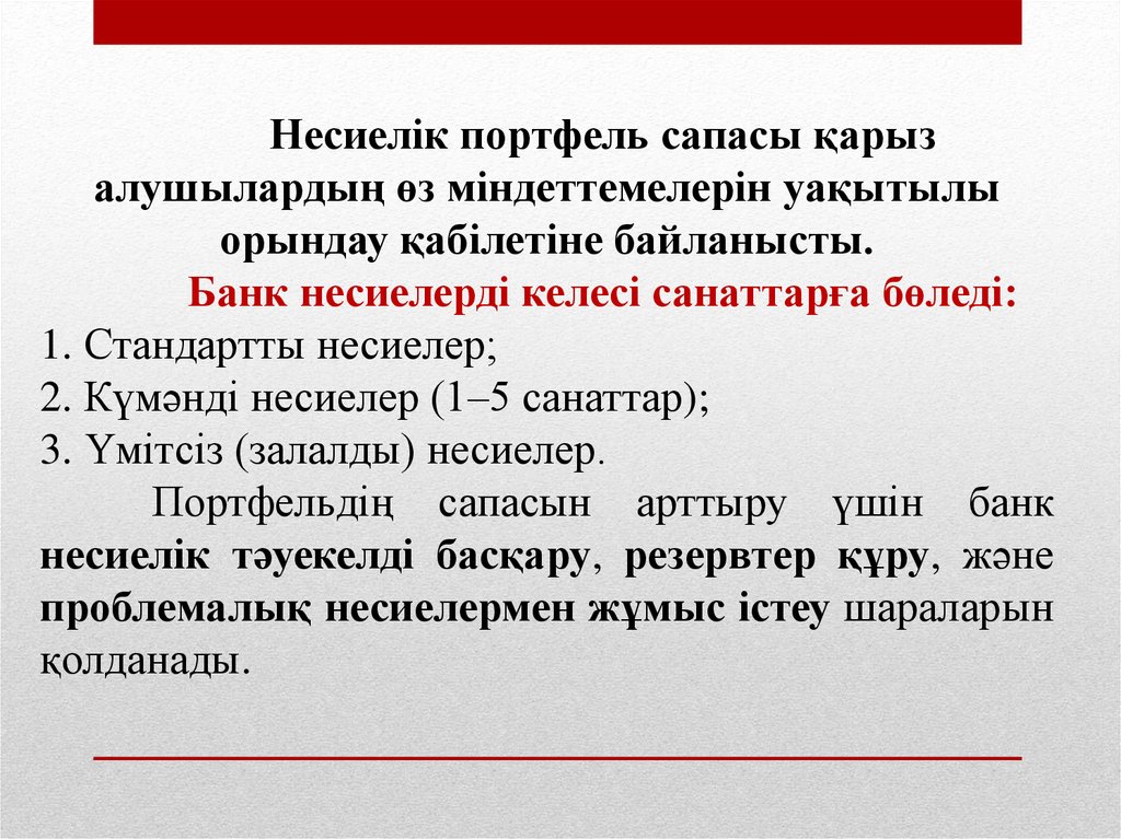 2. Несиелік портфельдің сапасын сақтау және