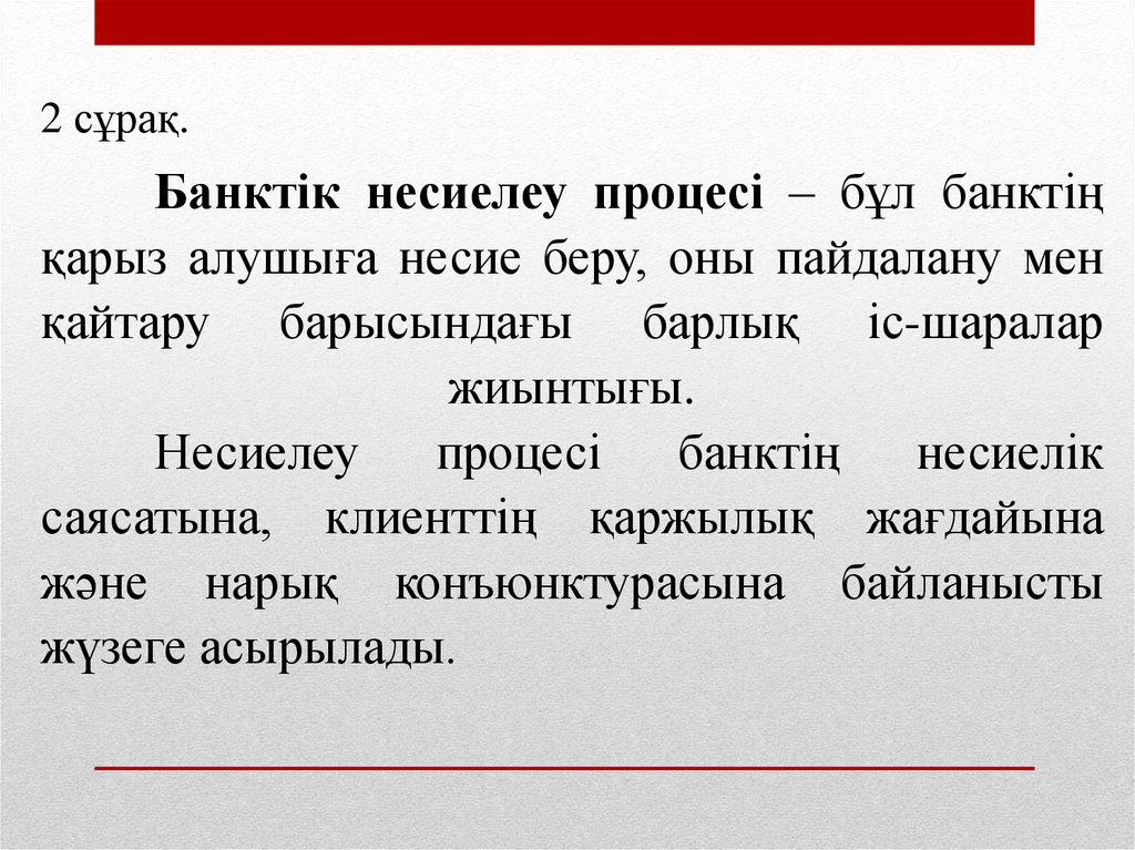 2 сұрақ.Банктік несиелеу процесі – бұл банктің