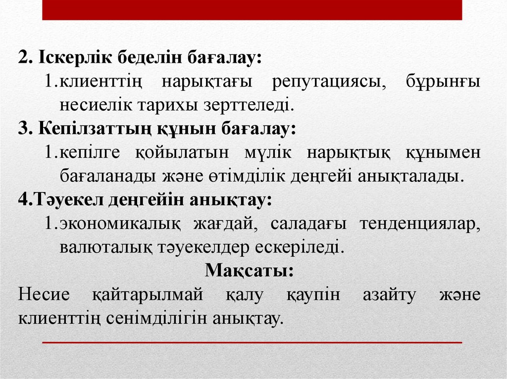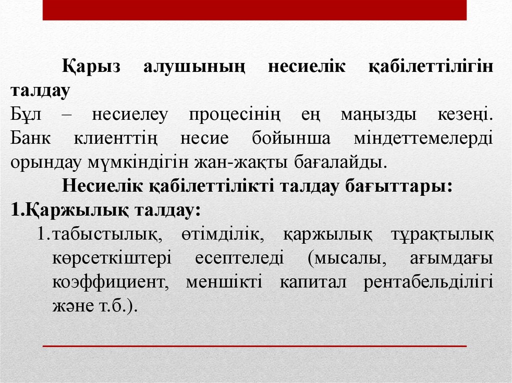 1. Қарыз алушыны талдау және бағалау;