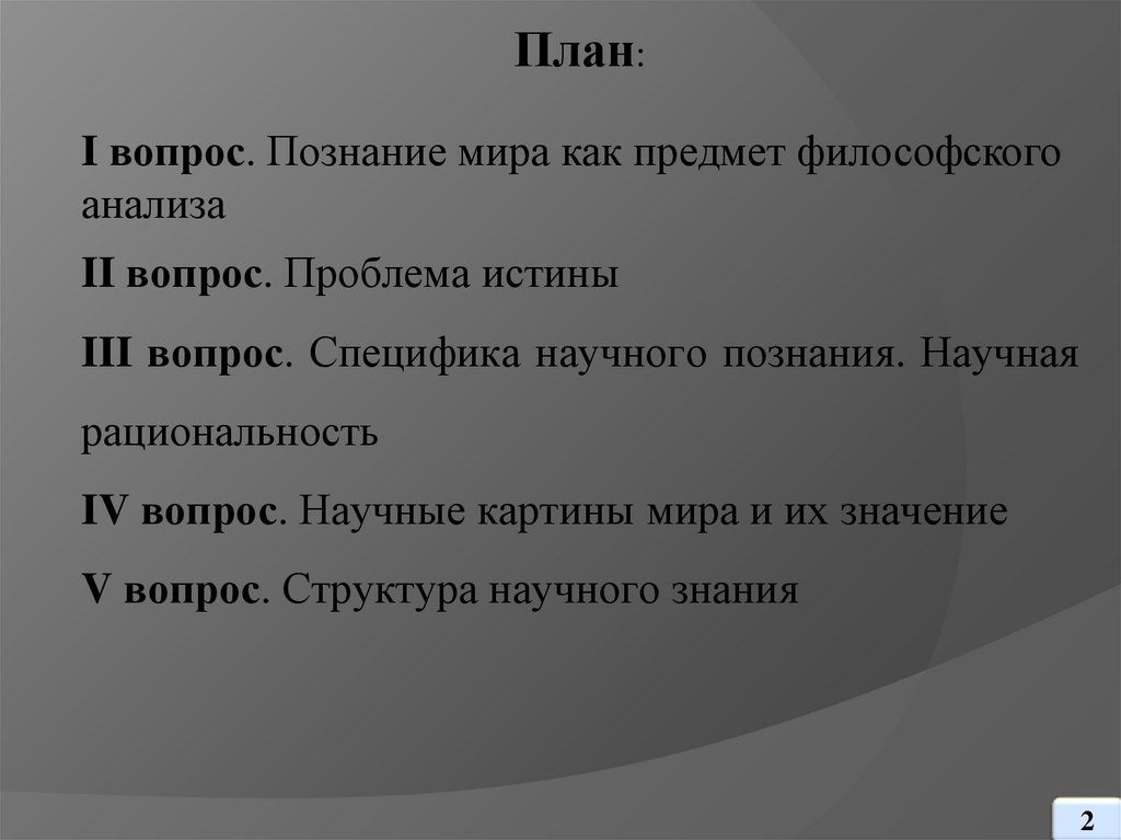 План:I вопрос. Познание мира как предмет философского