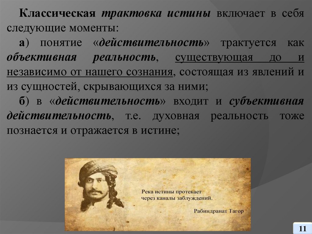 выражает реальные отношения вещей);