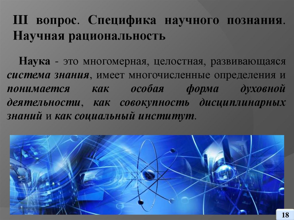III вопрос. Специфика научного познания. Научная