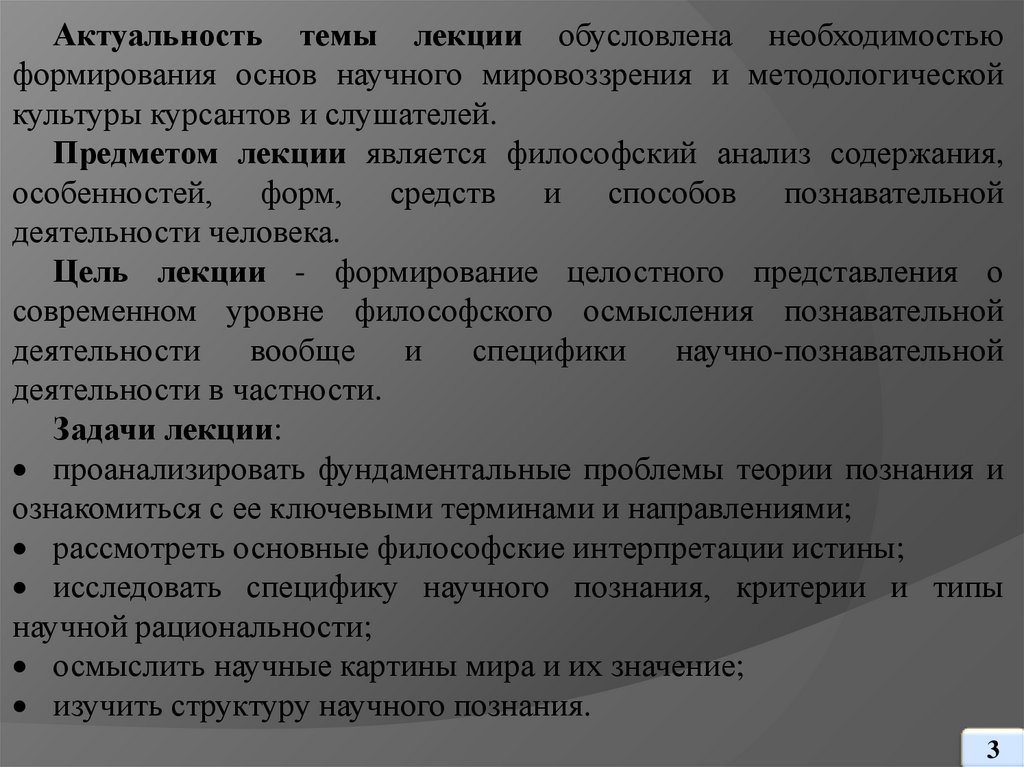 Предметом лекции является философский анализ содержания,