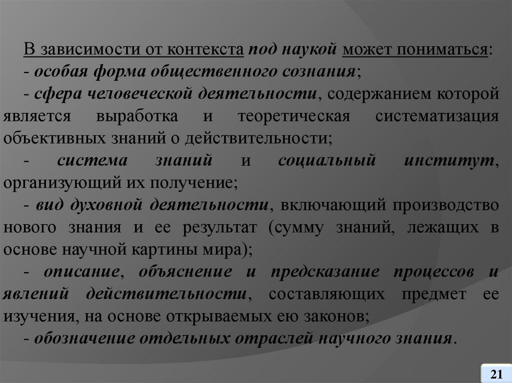 претензии науки на познание сущности предметов и