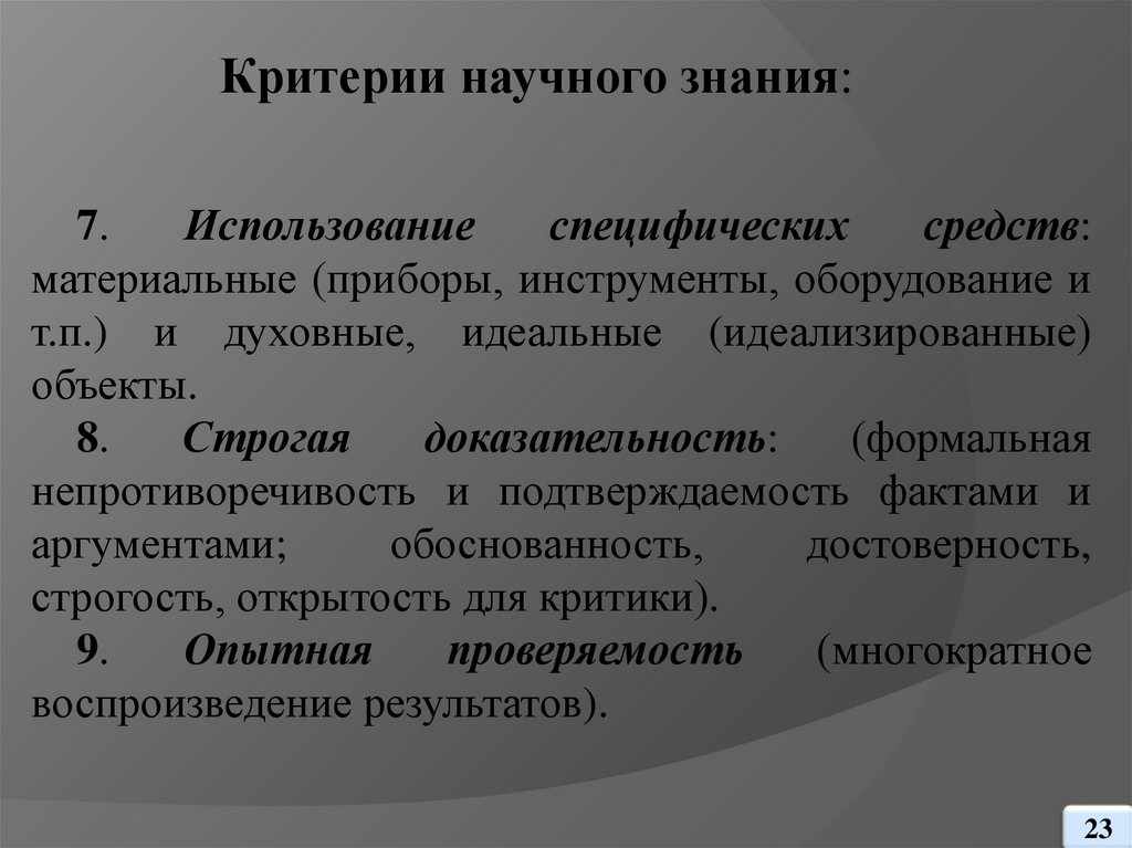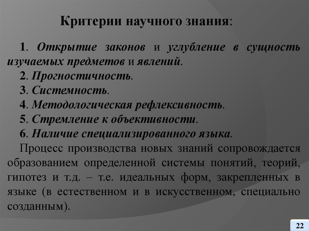 исследовать специфику научного познания, критерии и типы