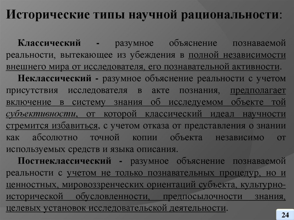 научной рациональности;